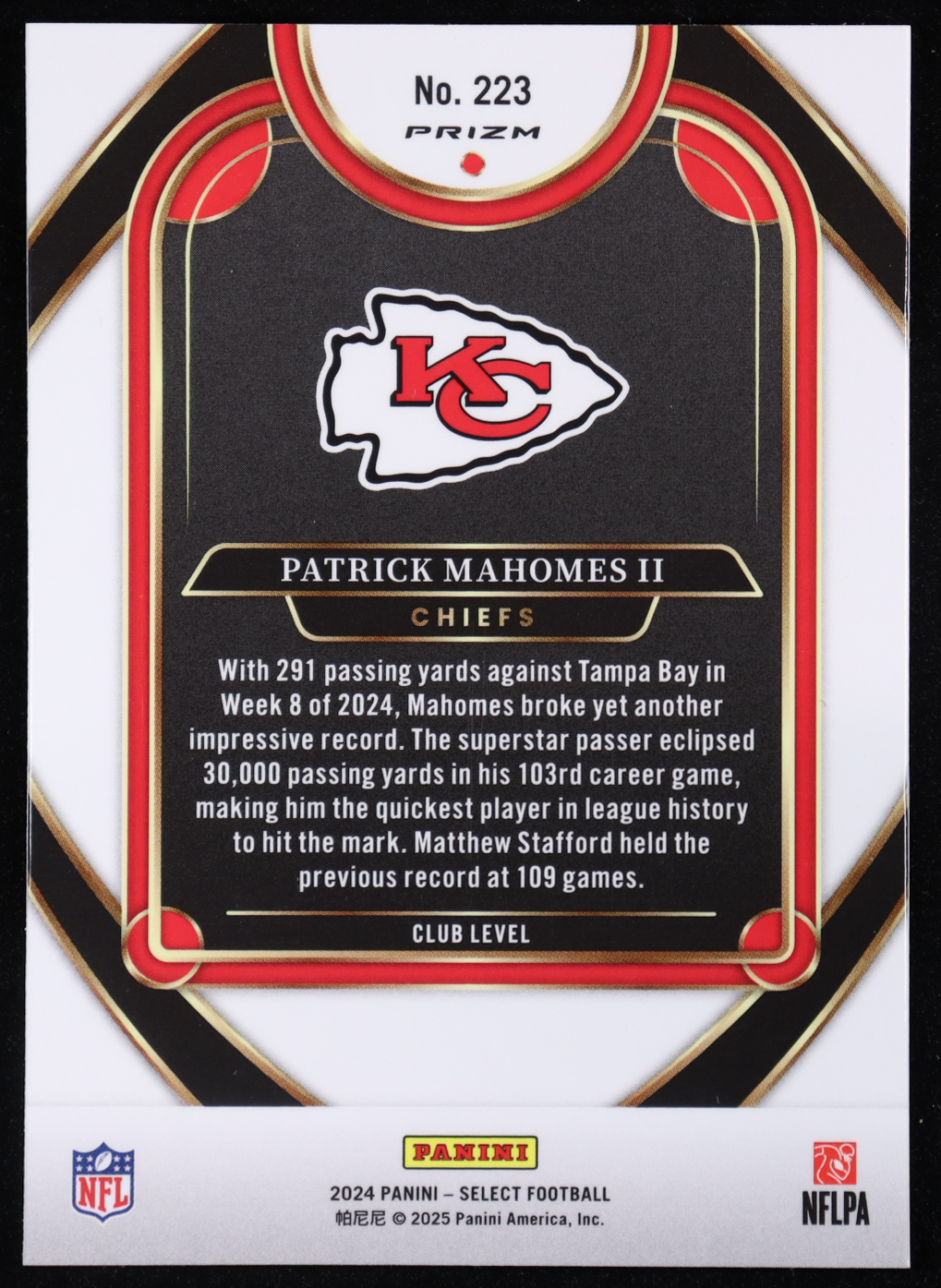 Patrick Mahomes II 2024 Select Prizm Black and Green Shock #223