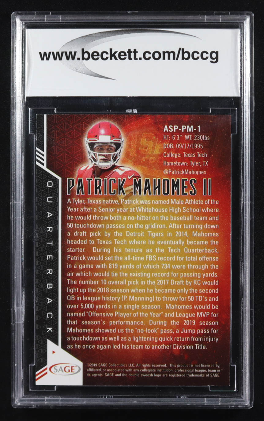 Patrick Mahomes II 2019 Sage Aspire #ASP-PM-1 (BCCG 10)