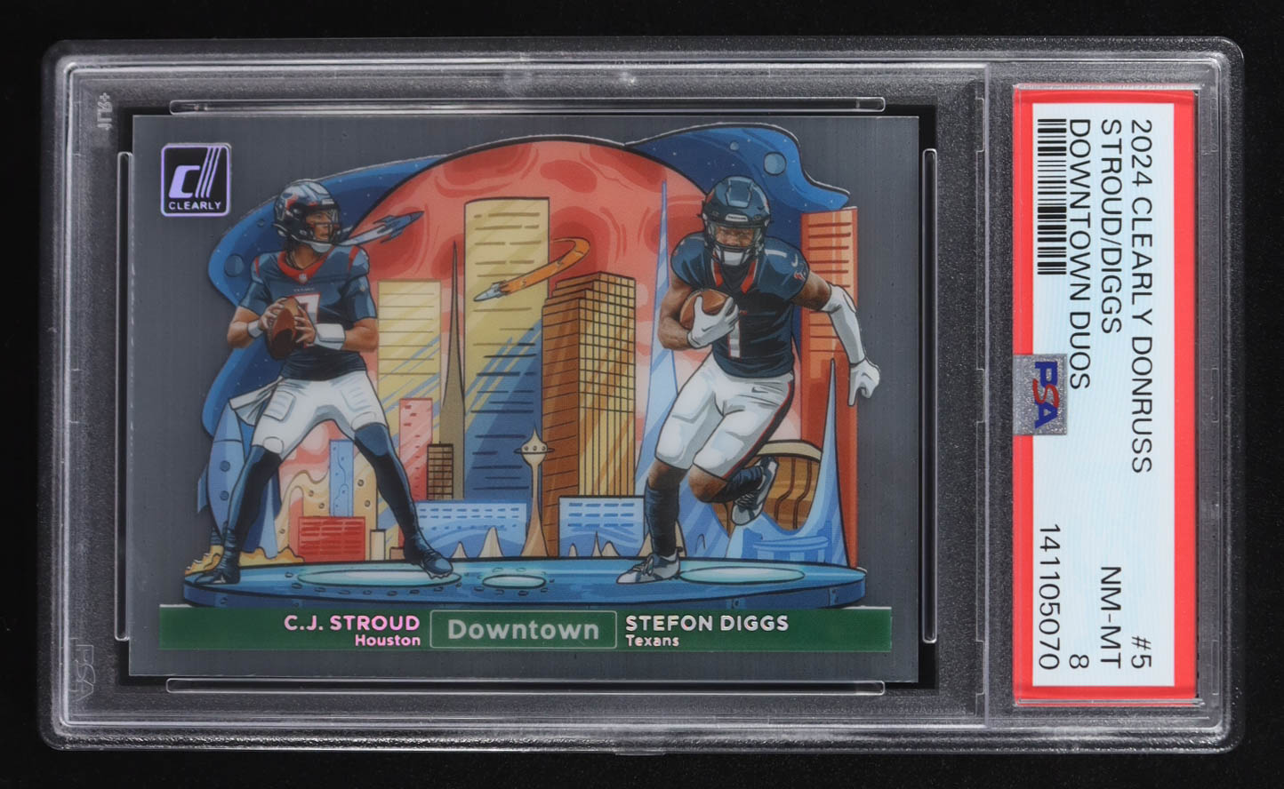 Stefon Diggs / CJ Stroud 2024 Clearly Donruss Downtown Duos #5 (PSA 8)