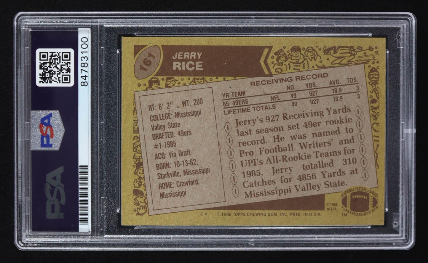 Jerry Rice Signed 1986 Topps #161 RC (PSA | Autograph Graded PSA 10)