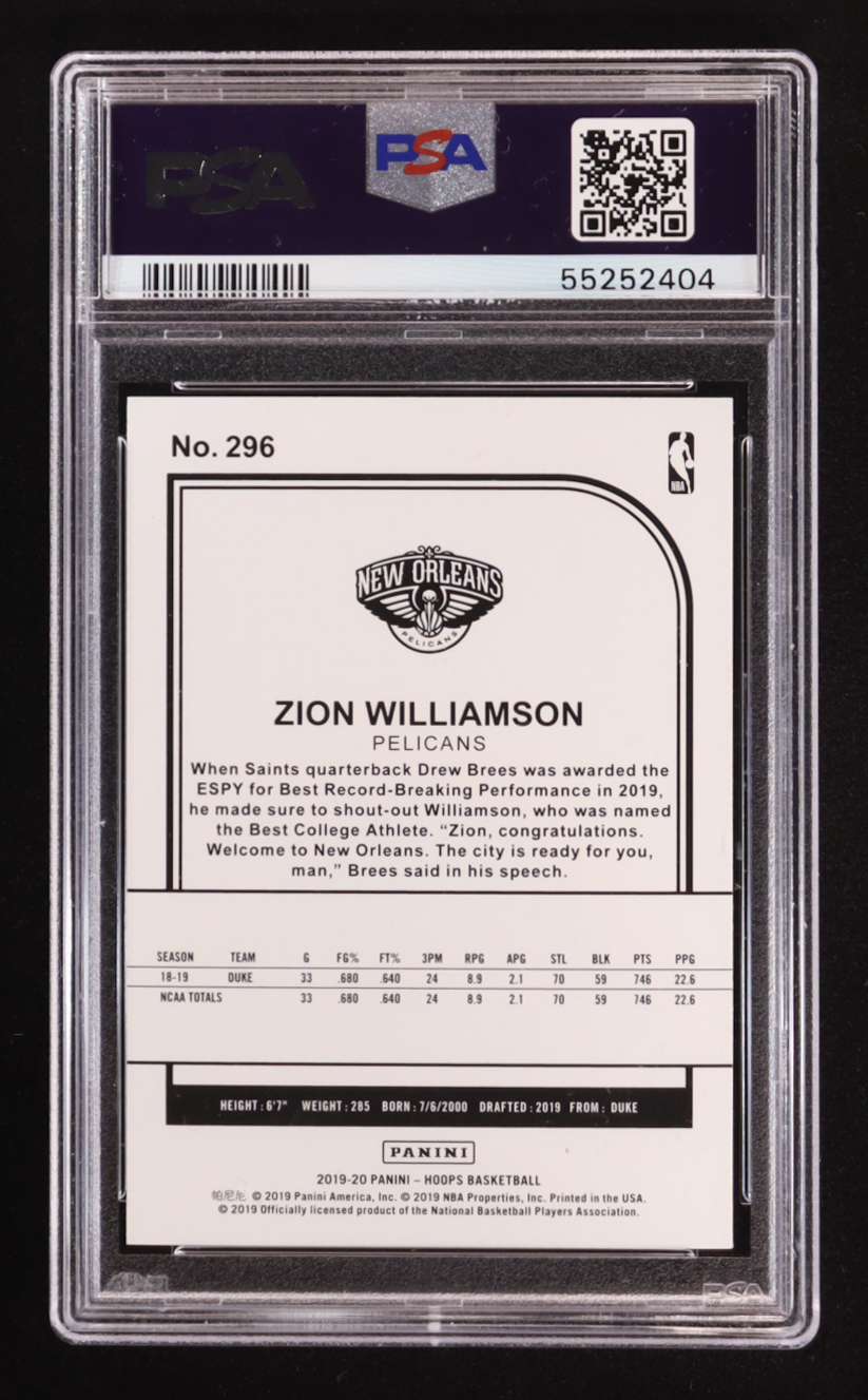 Zion Williamson 2019-20 Hoops #296 RC (PSA 10)