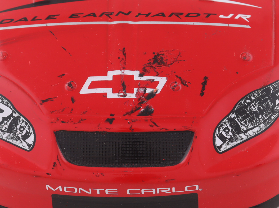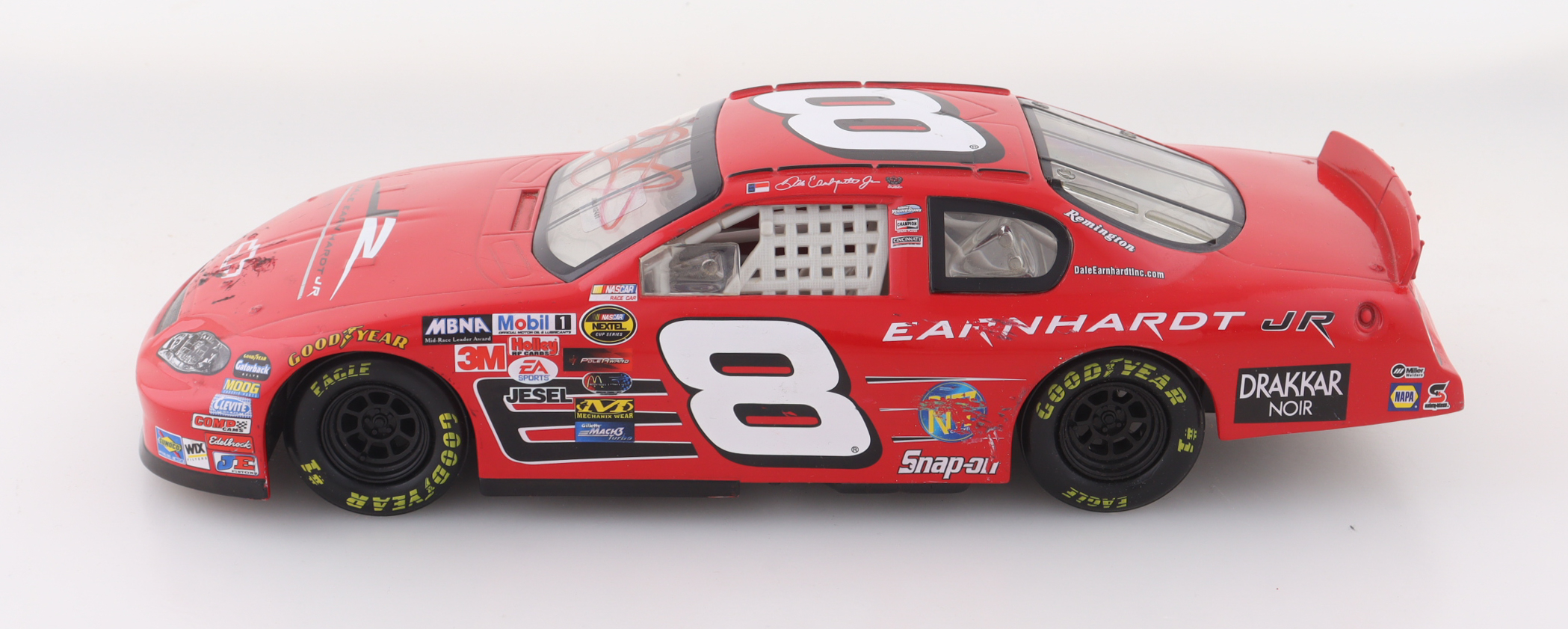 NASCAR premium die-cast car has been hand-signed on the windshield by Dale Earnhardt Jr. Please note there is a stain on the front of the hood, see photos for more details.