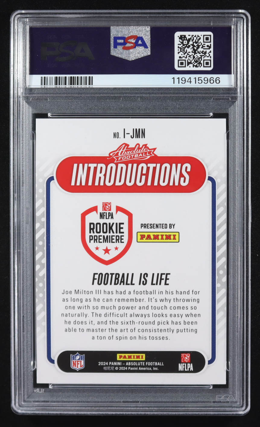 Joe Milton III 2024 Panini Absolute Introductions #I-JMN RC (PSA 10)