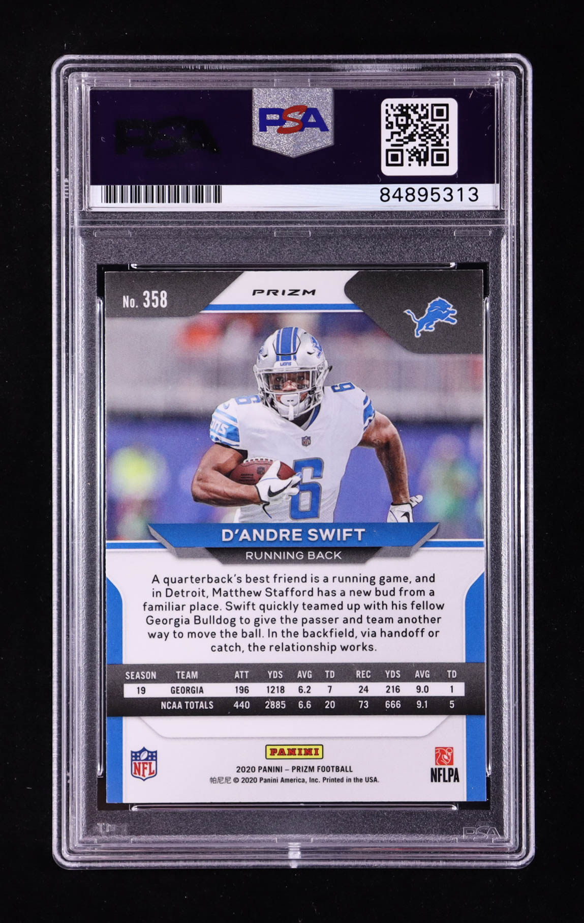 D'Andre Swift Signed 2020 Panini Prizm Prizms Orange Lazer #358 RC Inscribed "One Pride" (PSA)