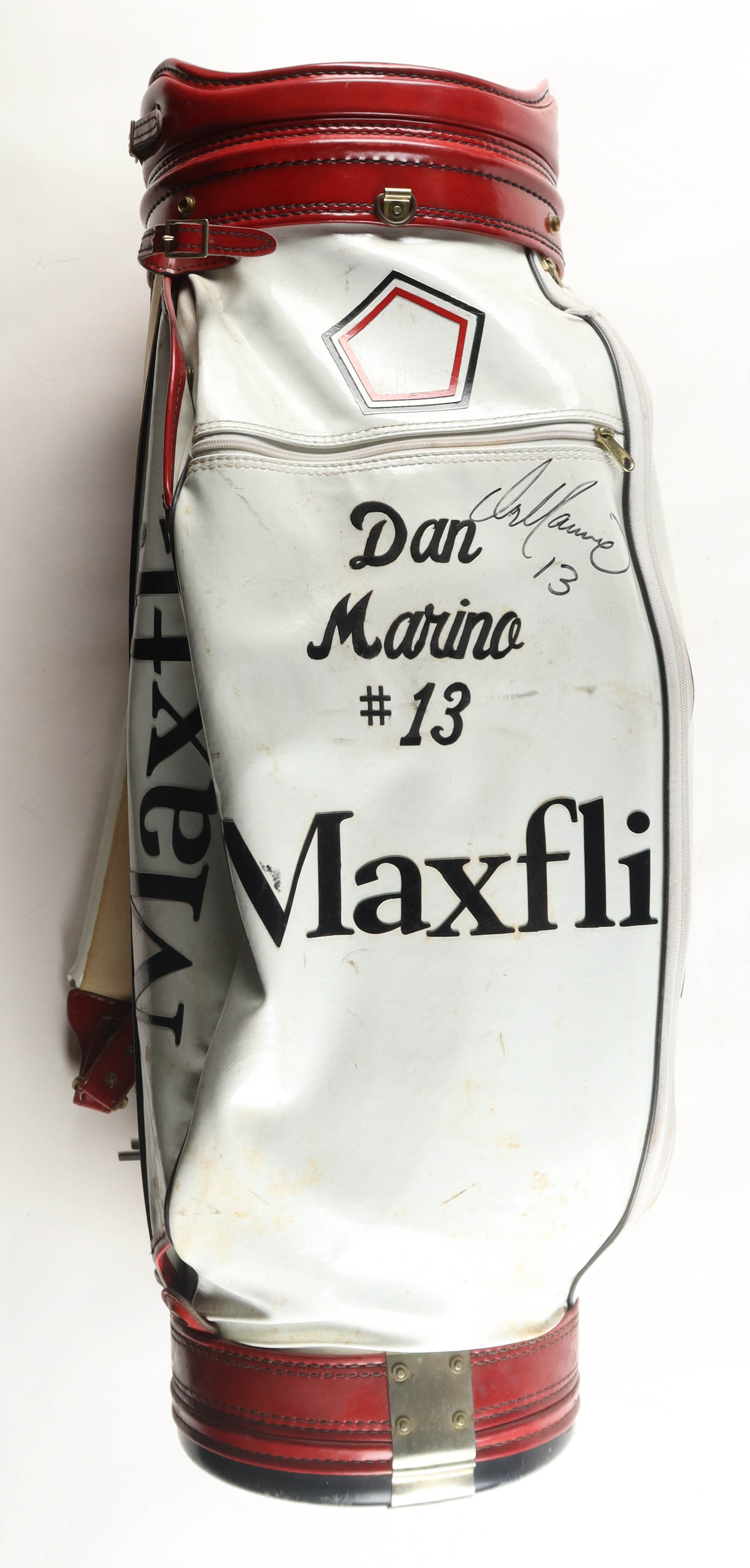Maxfli full-size golf bag has been hand-signed by Miami Dolphins legend, Dan Marino! This golf bag was personally used by Marino at an unknown time.