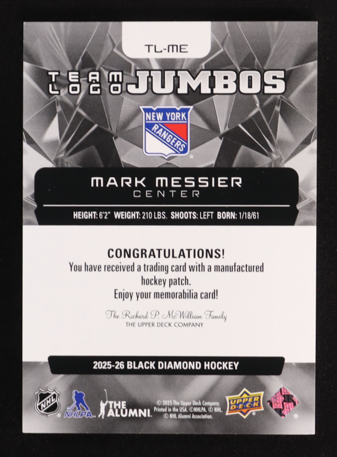 Mark Messier 2025-26 Black Diamond Team Logo Jumbo Patch Puzzle #TLME