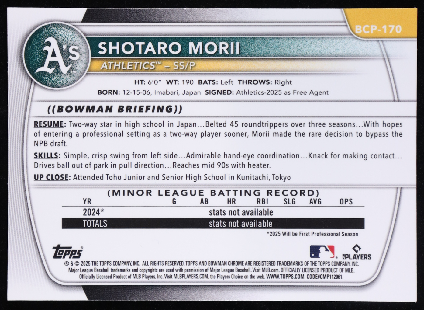 Shotaro Morii 2025 Bowman Chrome Prospects Shimmer Refractors #BCP170 RC