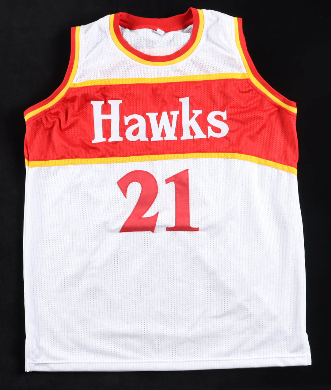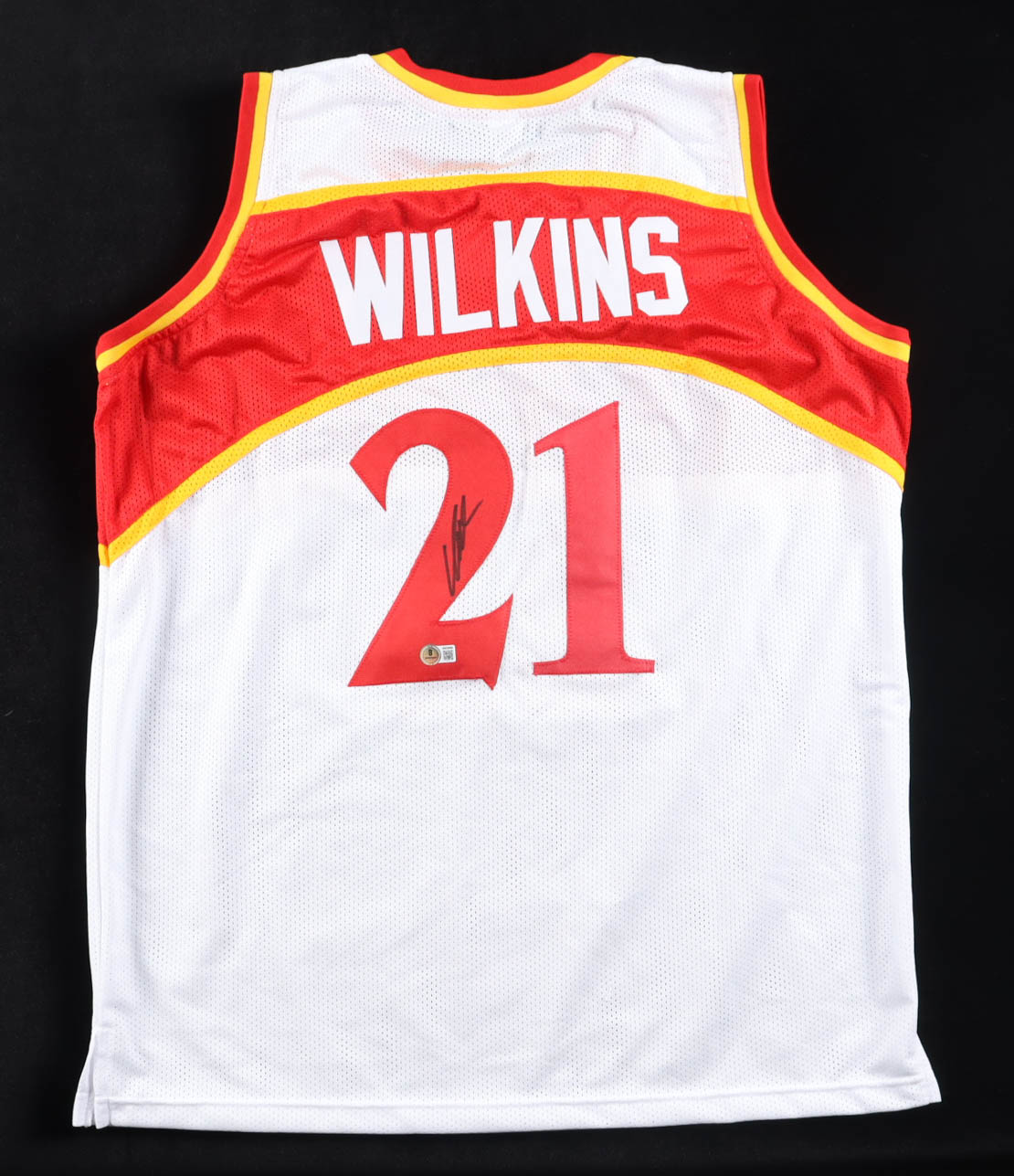 Custom jersey with everything sewn on, size XL. Hand-signed by Dominique Wilkins.