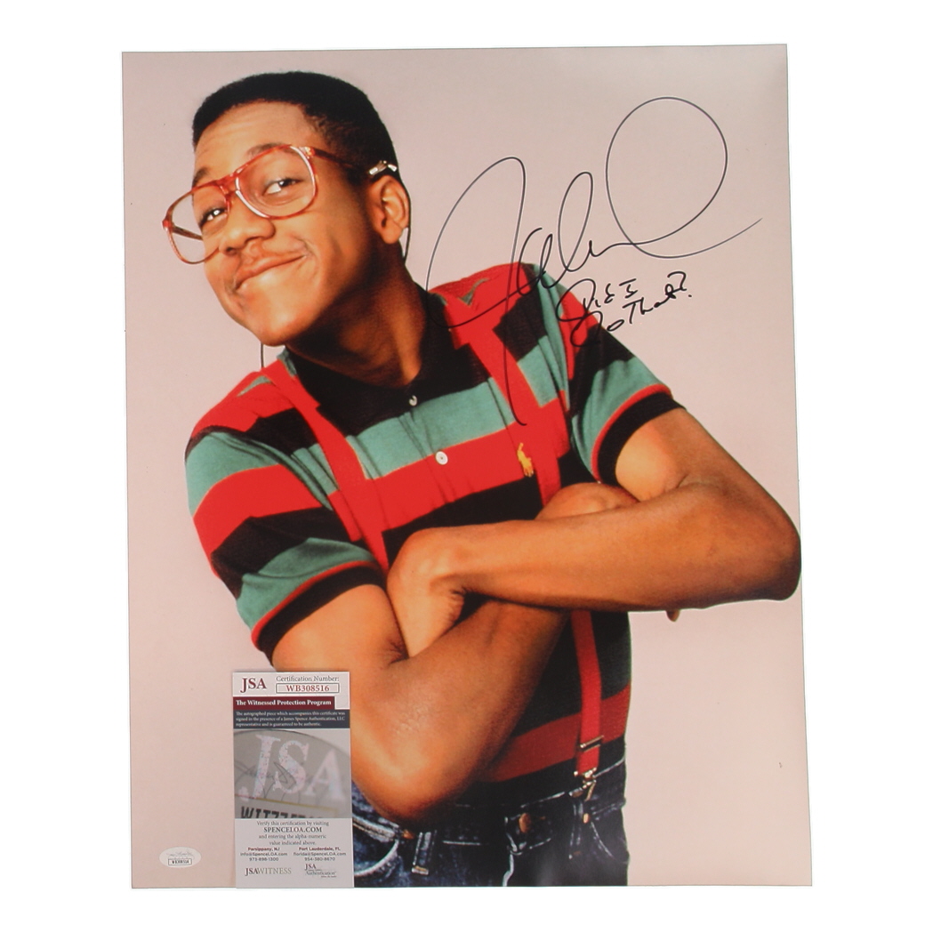Photo measures 16" x 20" in size. Hand-signed and inscribed by Jaleel White (Steve Urkel).