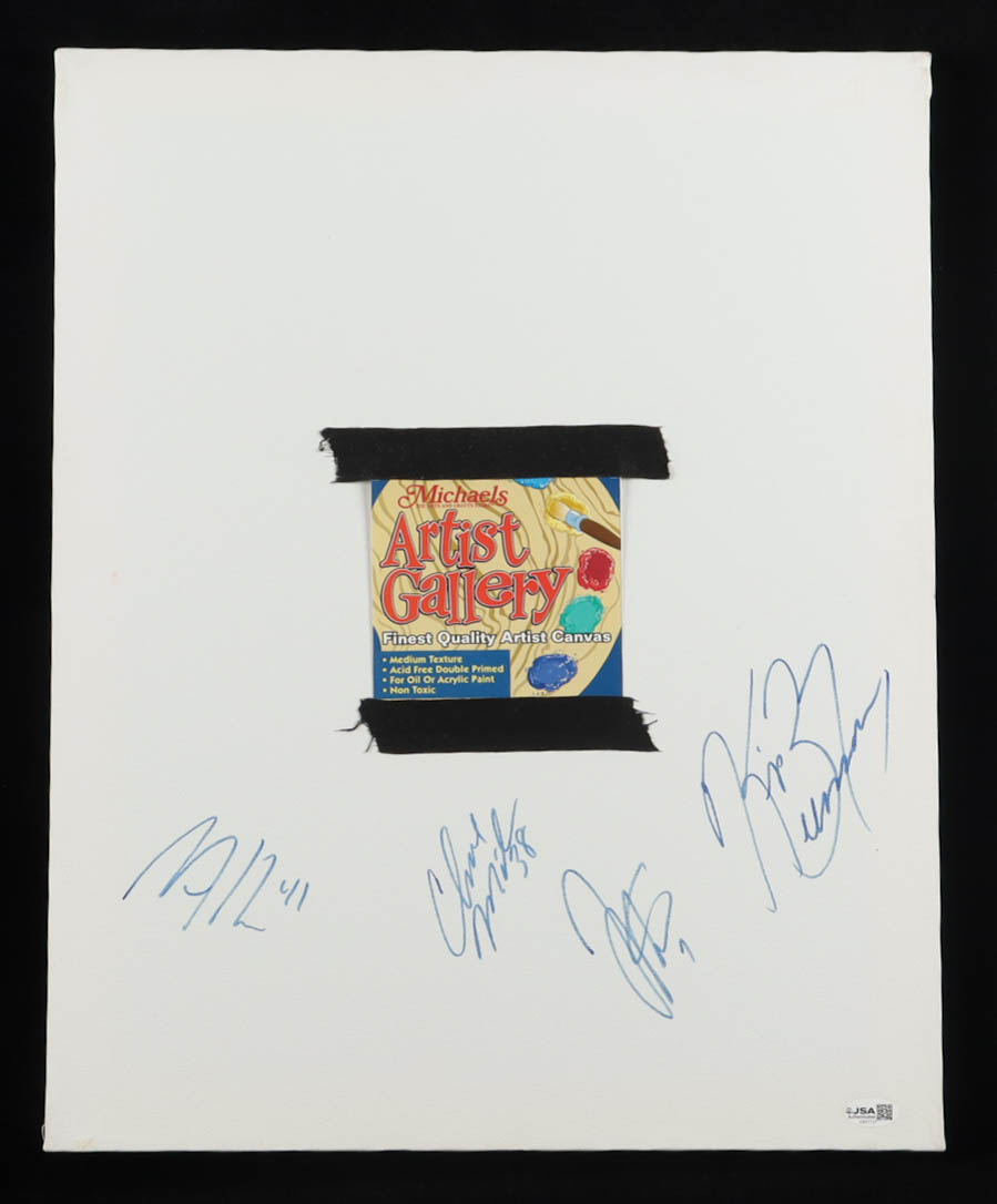 Canvas panel measures 16" x 20" in dimension and has been hand-signed by (4) with Jamie Storr, Jason Allison, Kip Brennan, and Chris McAlpine.