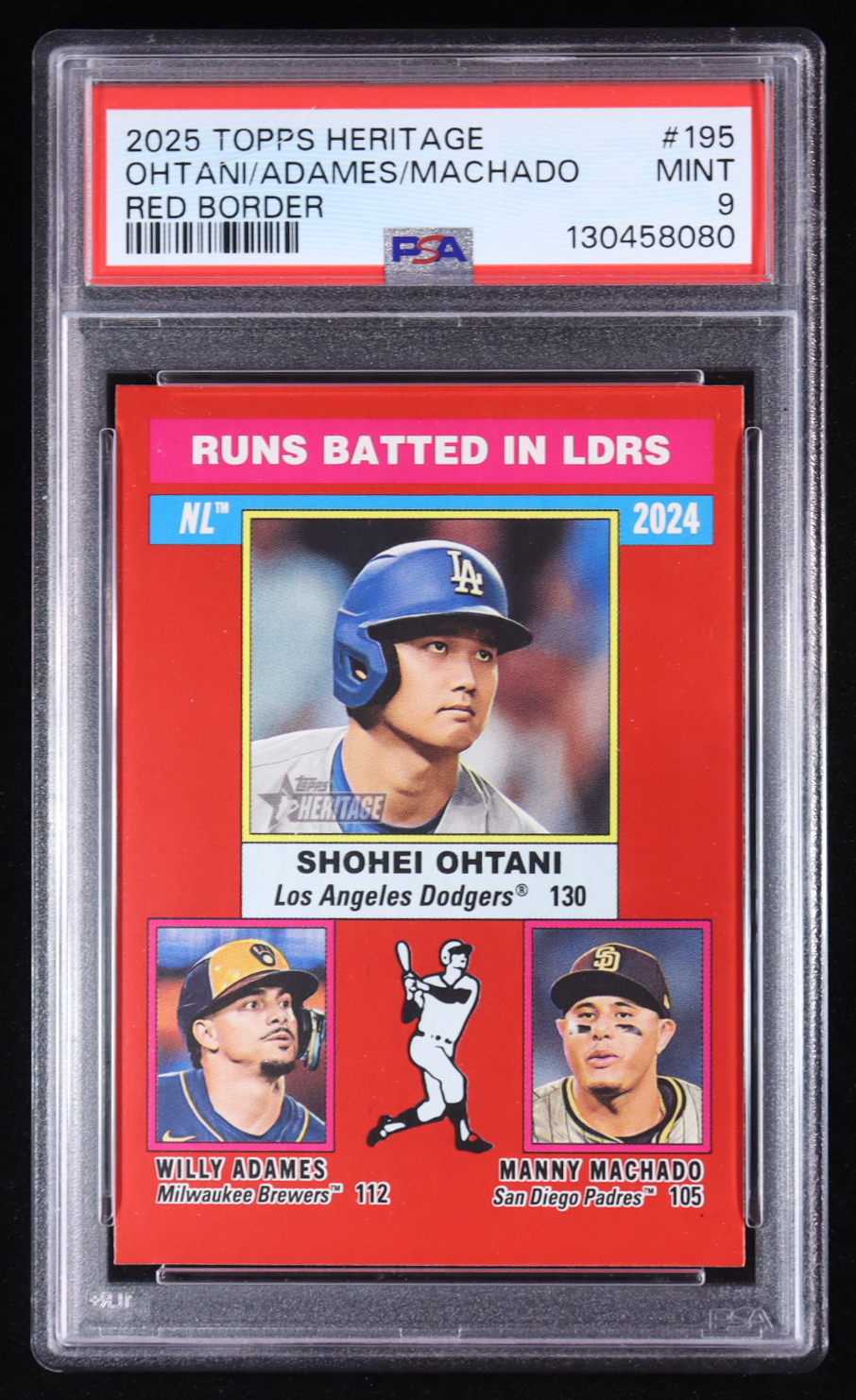 Manny Machado / Willy Adames / Shohei Ohtani 2025 Topps Heritage Red Border LL #195 (PSA 9)
