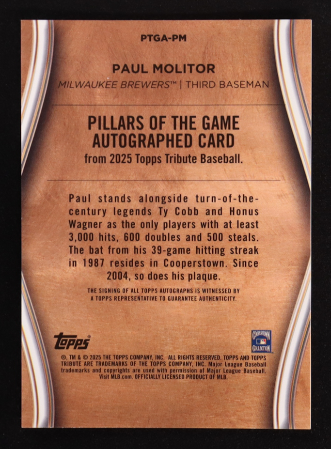Paul Molitor 2025 Topps Tribute Pillars of the Game Autographs #PTGAPM #065/199