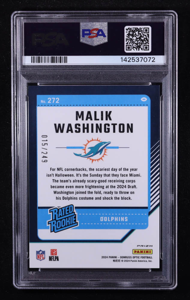 Malik Washington 2024 Panini Donruss Optic Orange RR #272 RC #015/249 (PSA 10)
