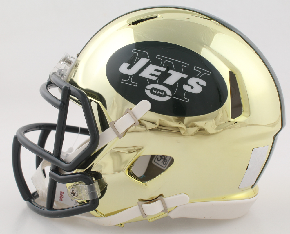 Riddell New York Jets Chrome Alternate Speed mini helmet. Hand-signed by Sam Darnold.