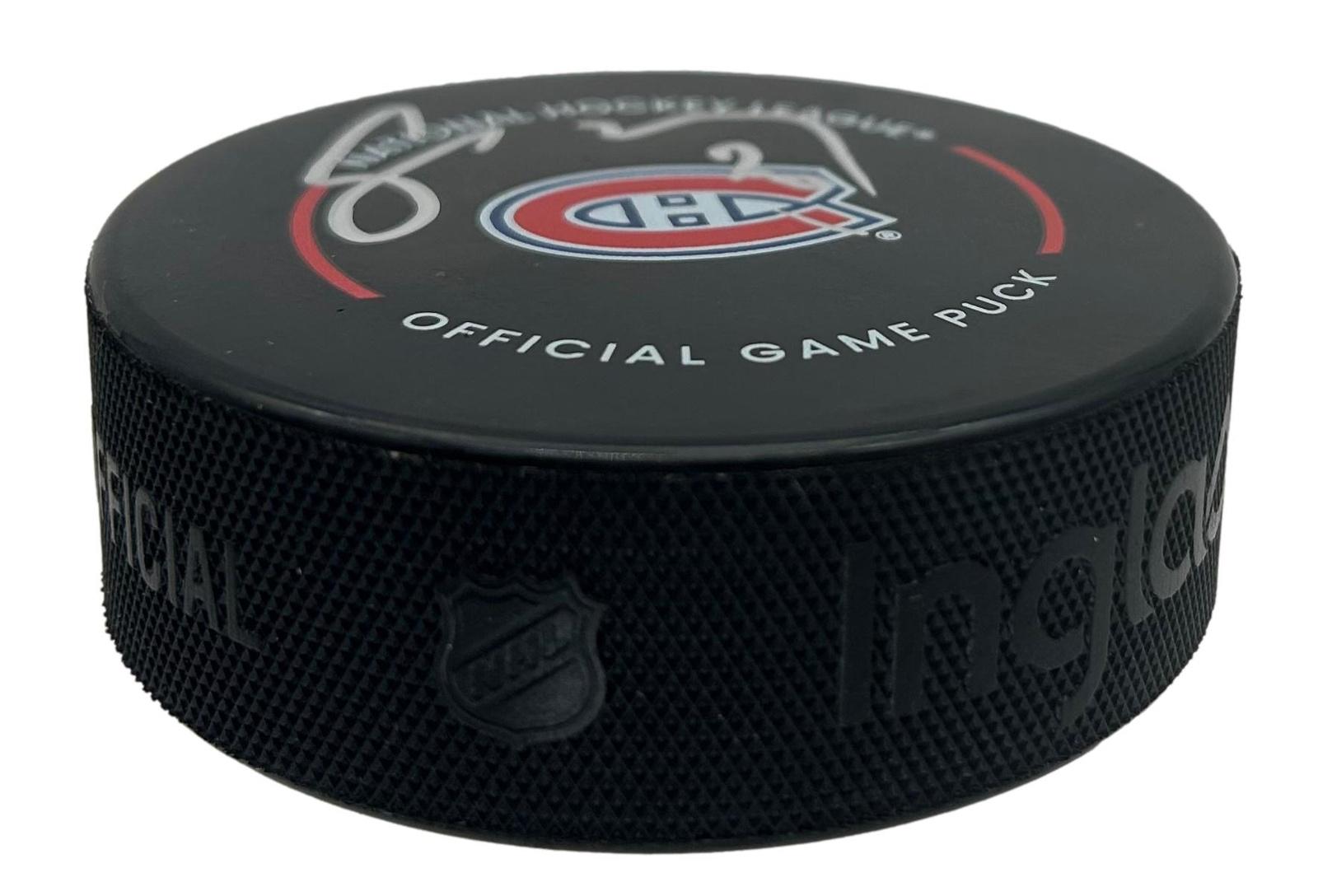 Montreal Canadiens Official Game puck hand-signed by Juraj Slafkovsky.