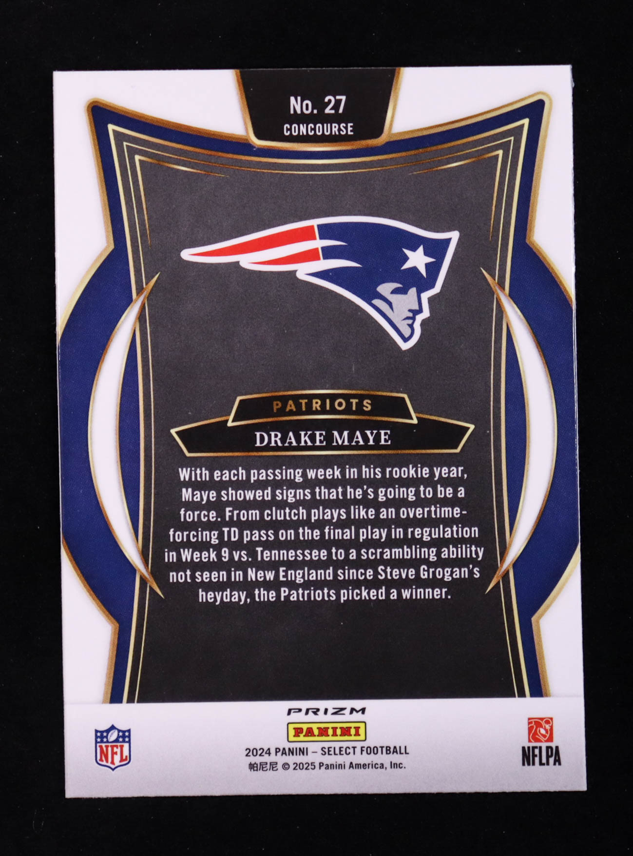 Drake Maye 2024 Select Prizm Black and Red Shock #27 RC