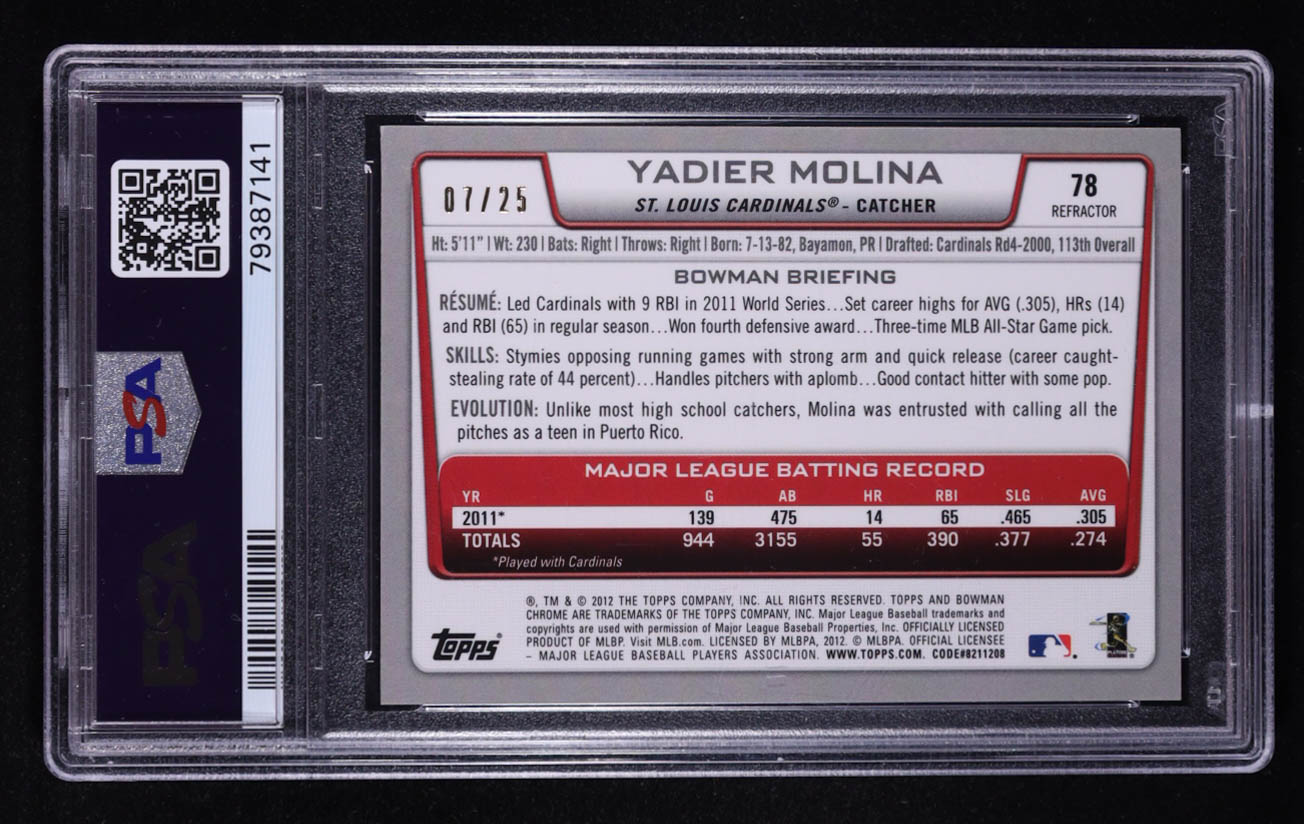 Yadier Molina 2012 Bowman Chrome Orange Refractors #78 #7/25