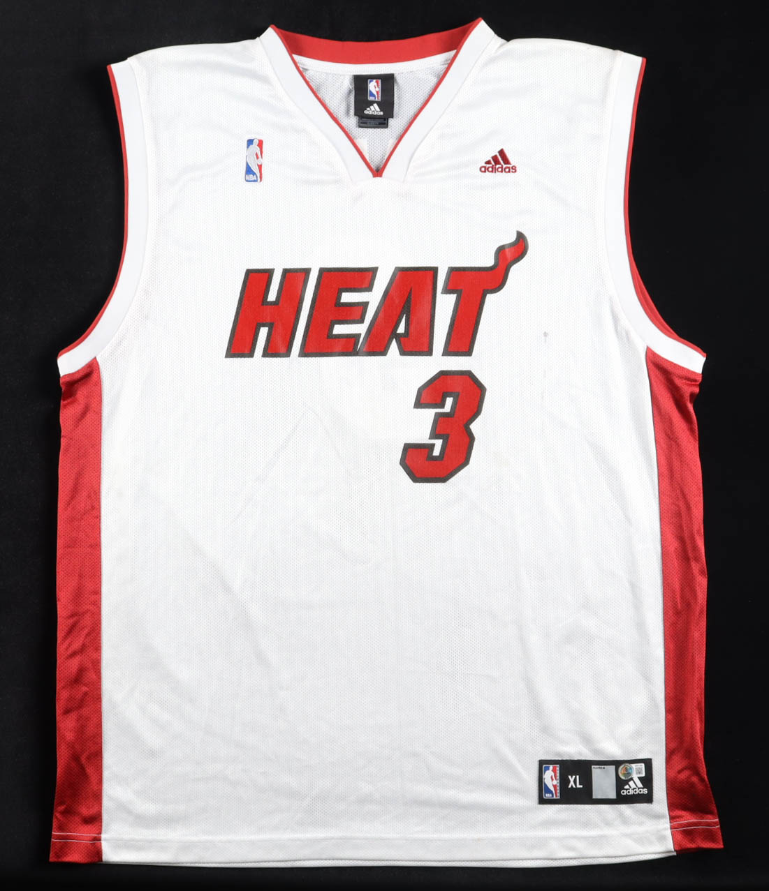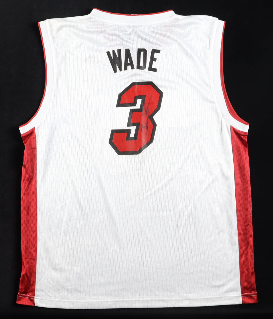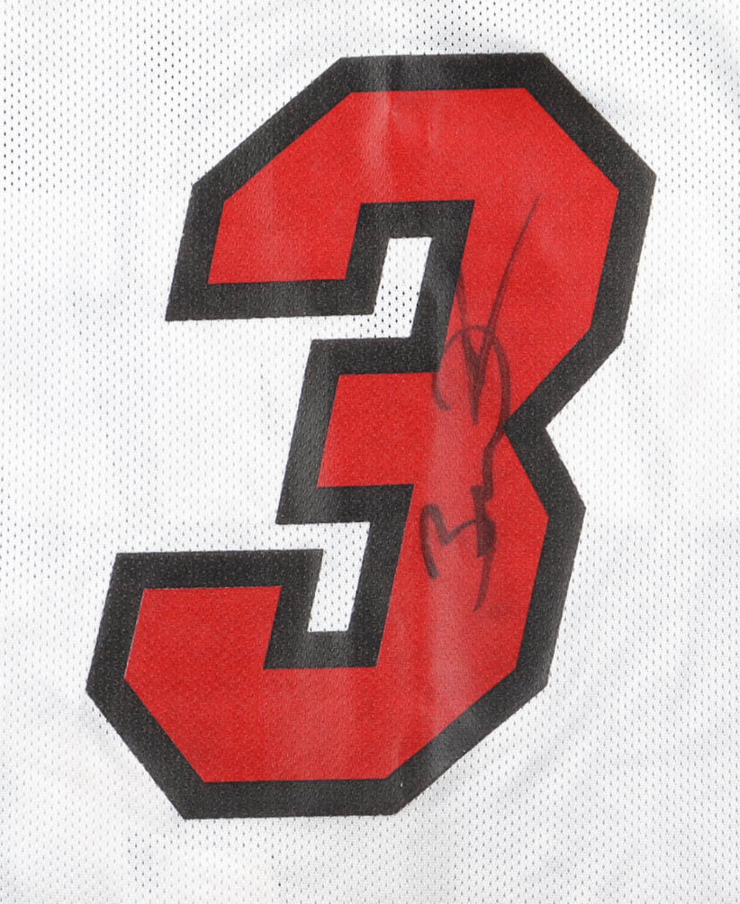 Adidas jersey with everything printed on, size XL. Hand-signed by Dwyane Wade (HOF). Please note. there is staining on the front of the jersey.
