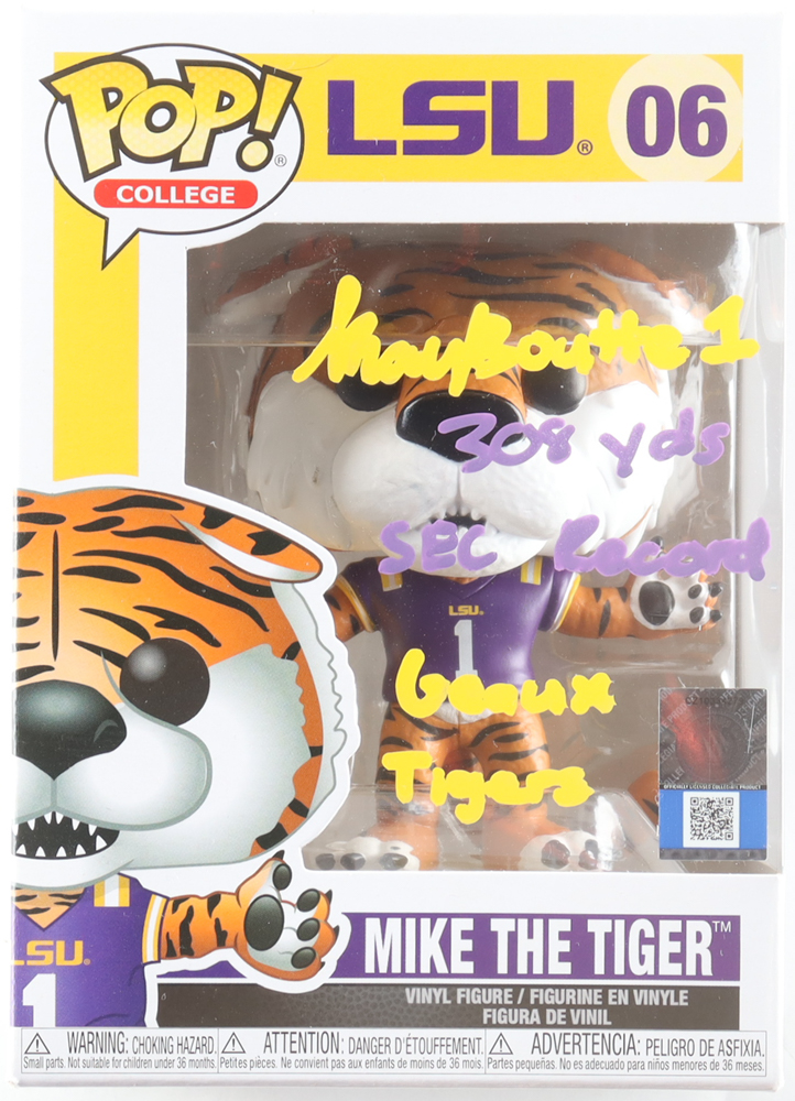 Kayshon Boutte Signed LSU #06 Mike The Tiger Funko Pop! Vinyl Figure Inscribed "308 Yds SEC Record" & "Geaux Tigers" (Beckett)