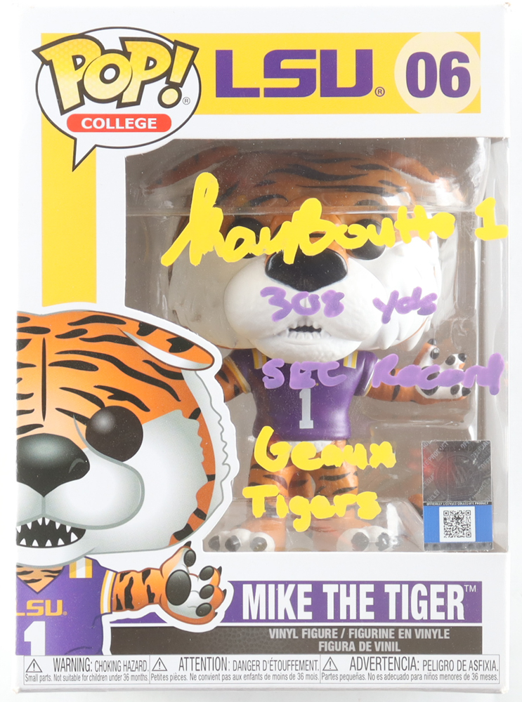 Kayshon Boutte Signed LSU #06 Mike The Tiger Funko Pop! Vinyl Figure Inscribed "308 Yds SEC Record" & "Geaux Tigers" (Beckett)