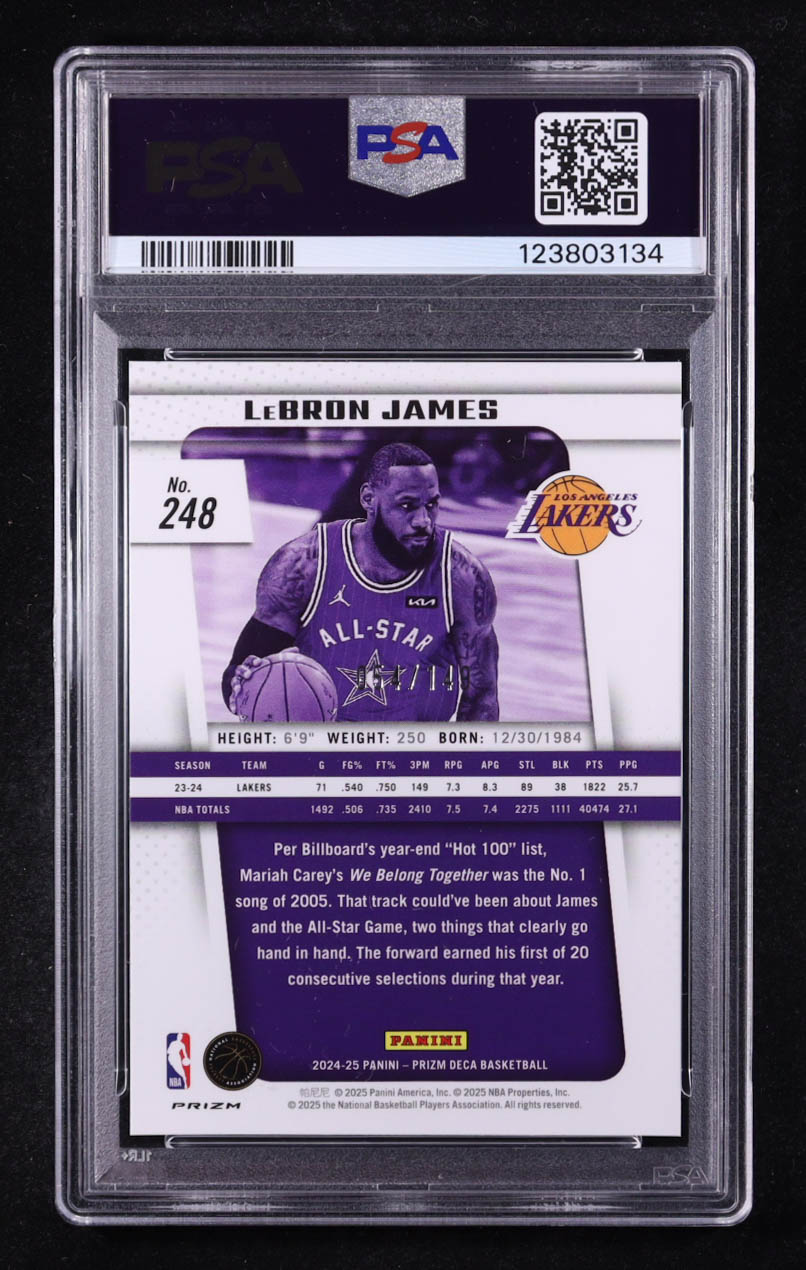 LeBron James 2024-25 Prizm Deca Prizms Blue #248 #054/149 (PSA 8)