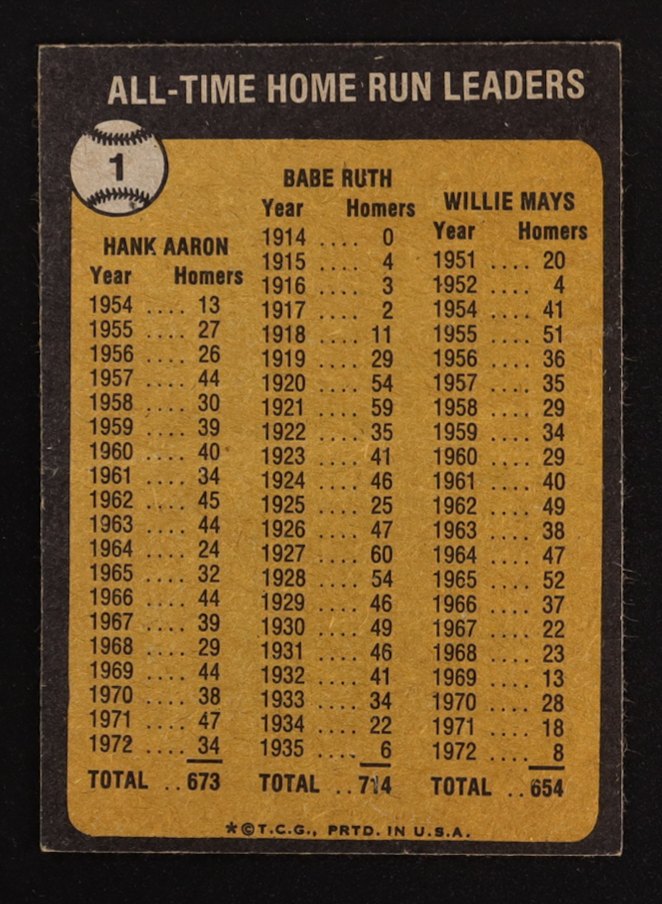 Babe Ruth / Hank Aaron / Willie Mays 1973 Topps All-Time Home Run Leaders #1