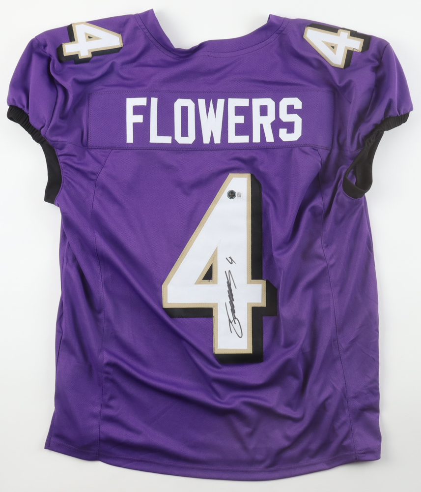 Custom jersey with everything sewn on, size XL. Hand-signed by Zay Flowers.