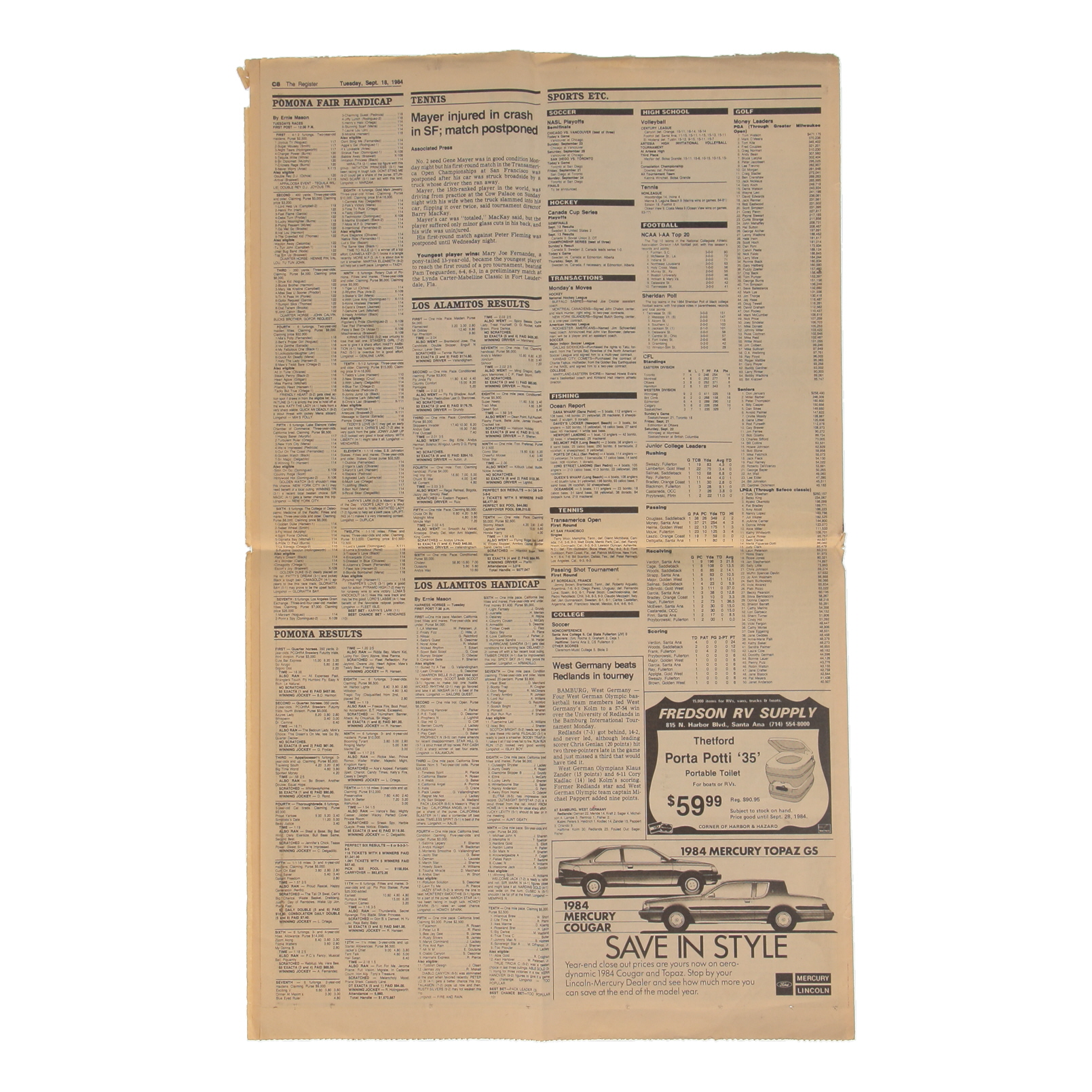 September 18, 1984 issue of The Register has been hand-signed by Reggie Jackson (California Angels, HOF). Please note the smudged signature.