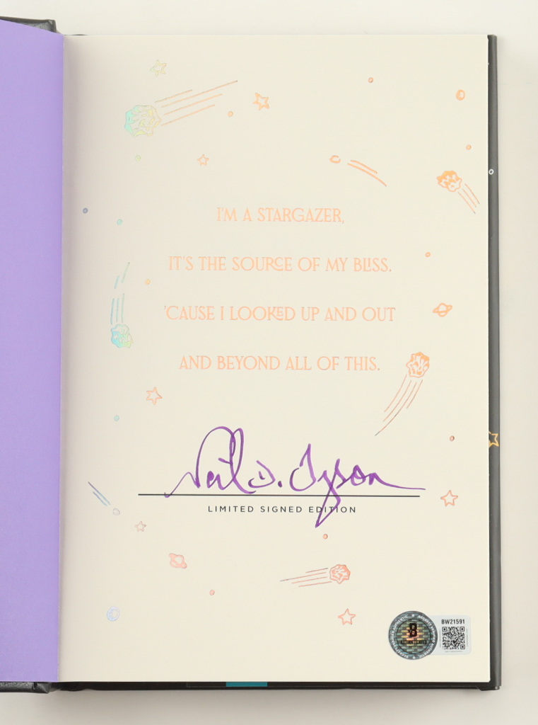 Hardcover book has been hand-signed on the inside cover page by Neil deGrasse Tyson.