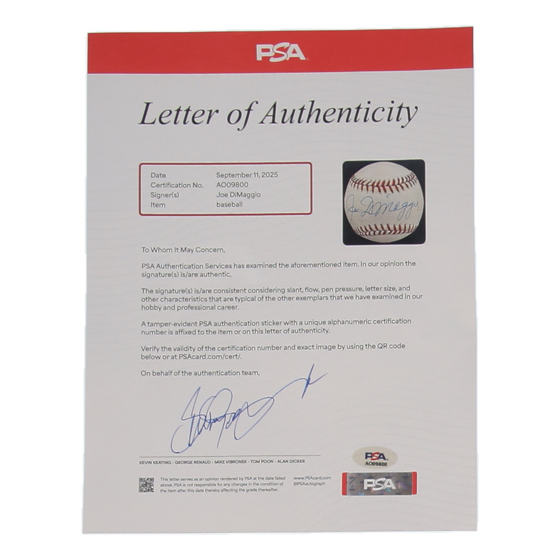 Joe DiMaggio Signed OAL Baseball (PSA)