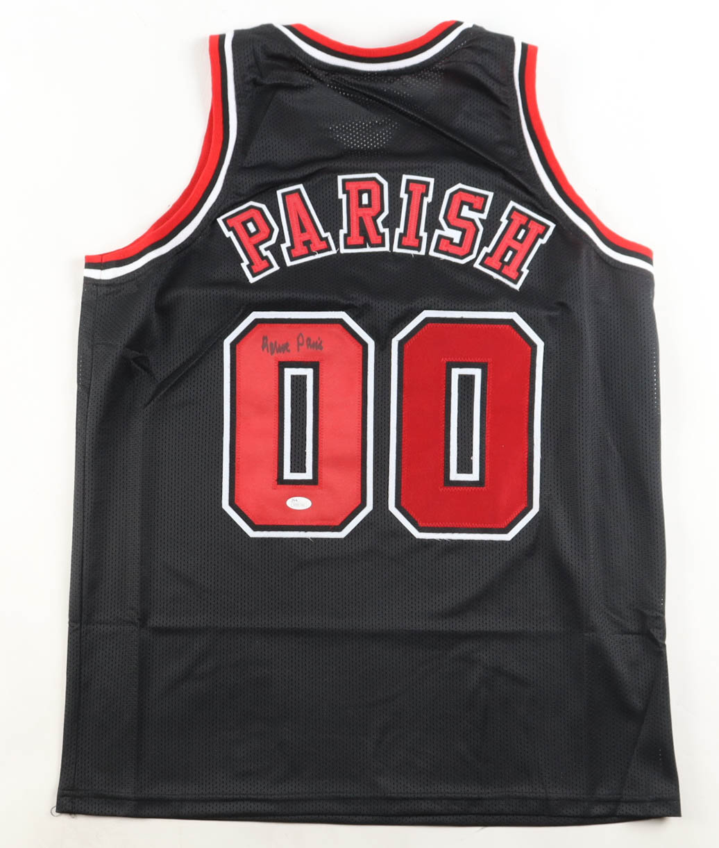 Custom jersey with everything sewn on, size XL. Hand-signed by Robert Parish (HOF).