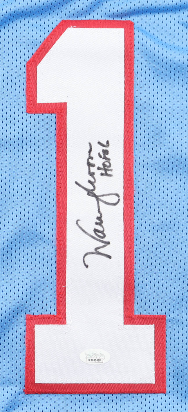 Warren Moon Signed Career Highlight Stats Jersey Inscribed "HOF 06" (JSA)