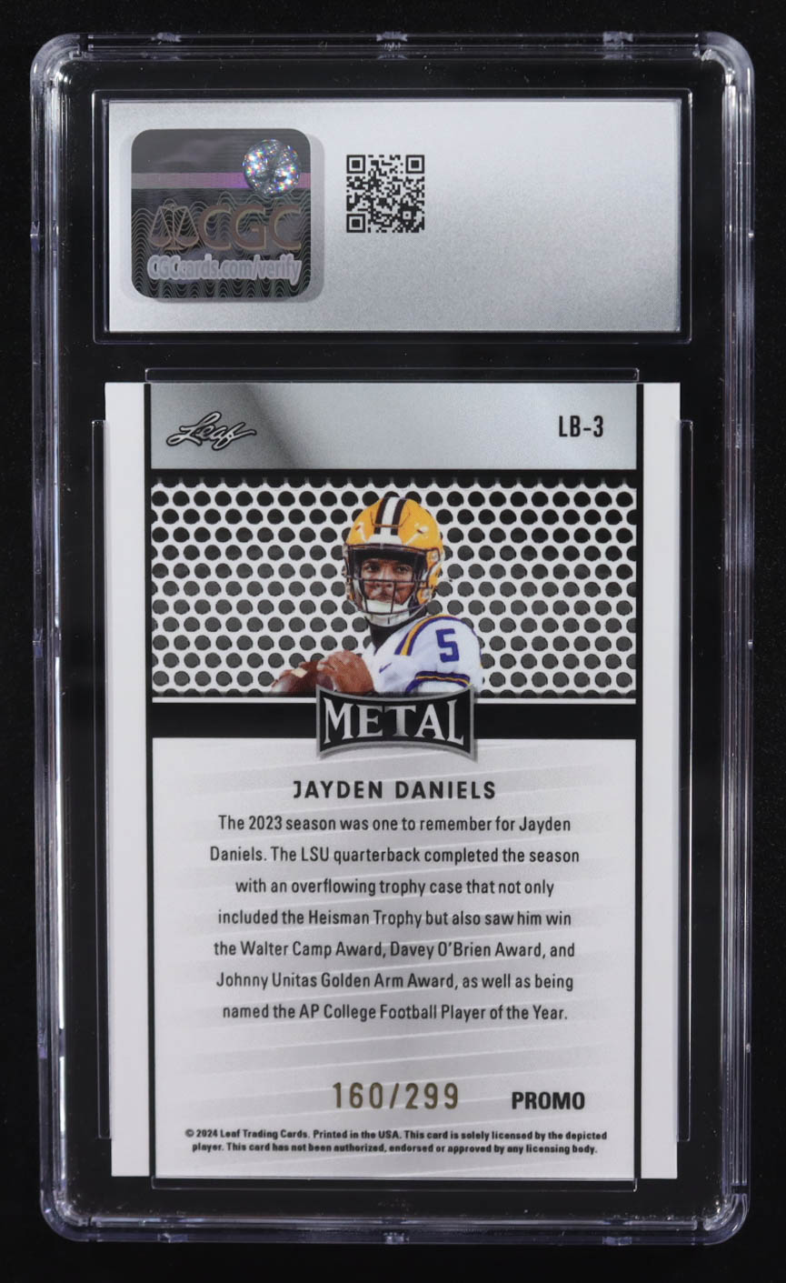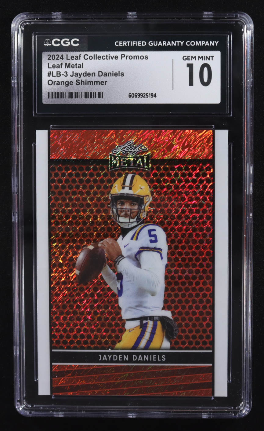 Jayden Daniels 2024 Leaf Collective Promos Metal Orange Shimmer #LB-3 RC #160/299 (CGC 9)