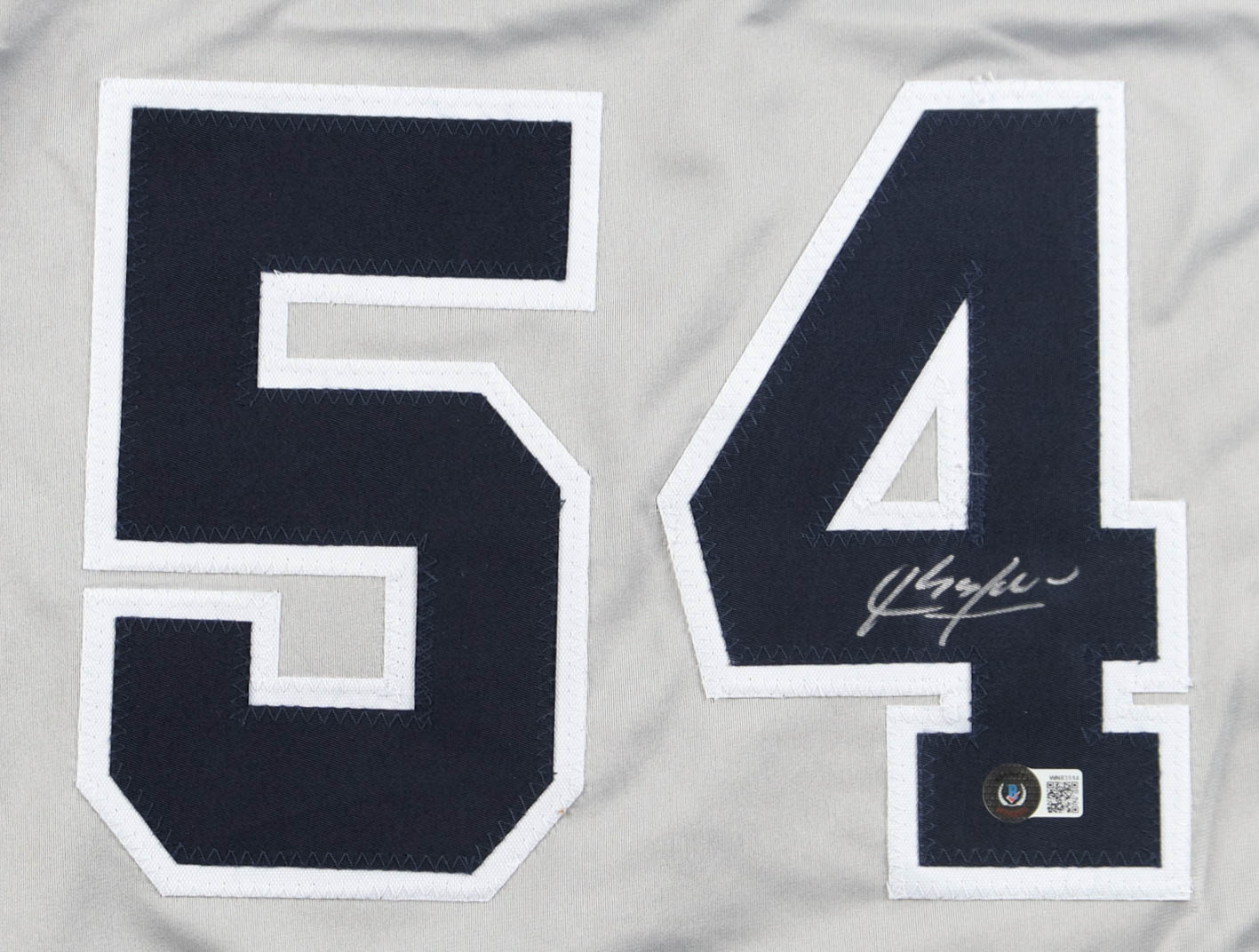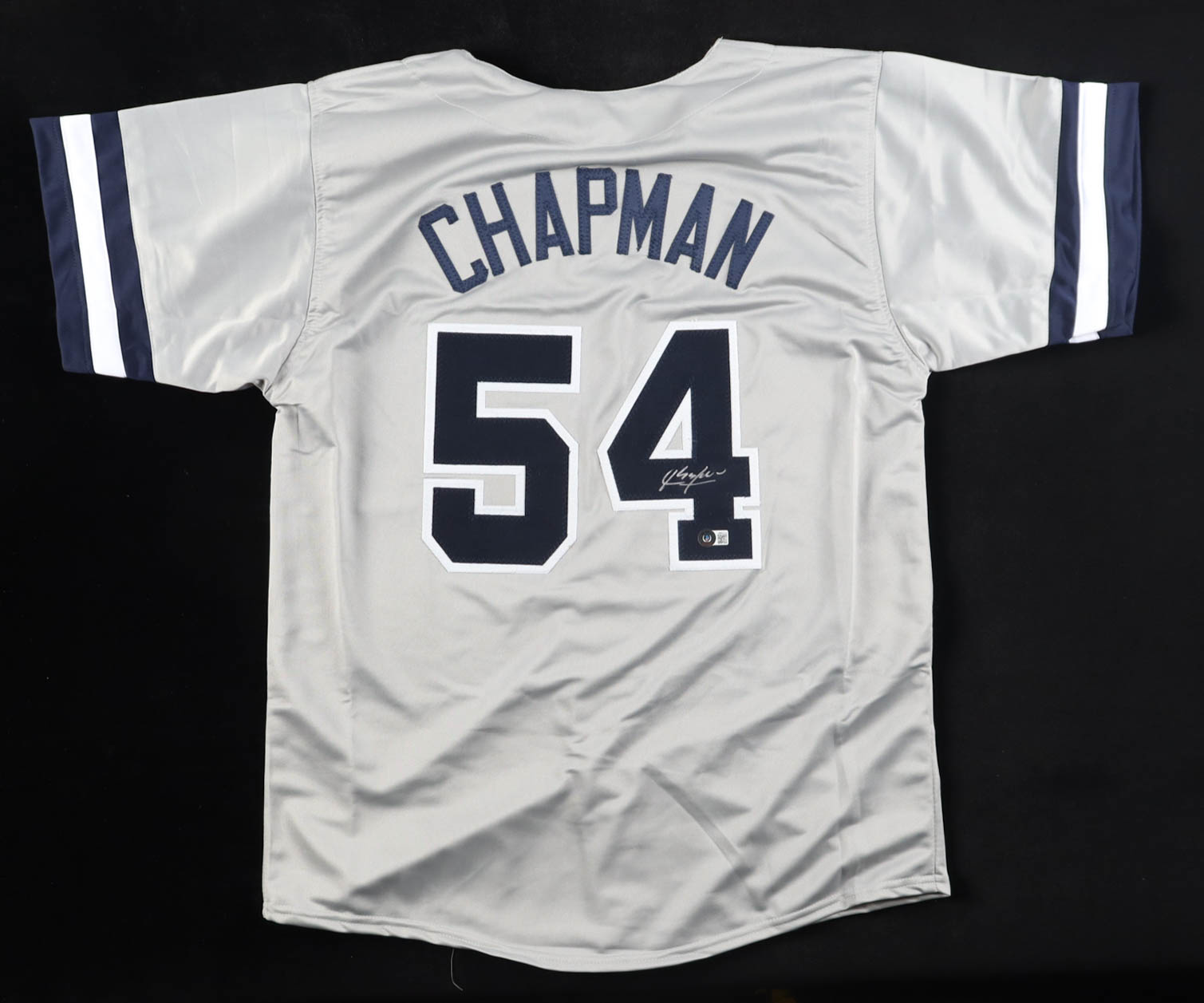 Custom jersey. Everything is sewn on, size XL. Hand-signed by Aroldis Chapman.