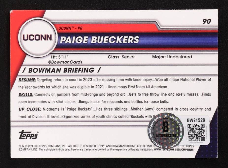 Paige Bueckers 2024 Bowman U Chrome Auto #90 RC