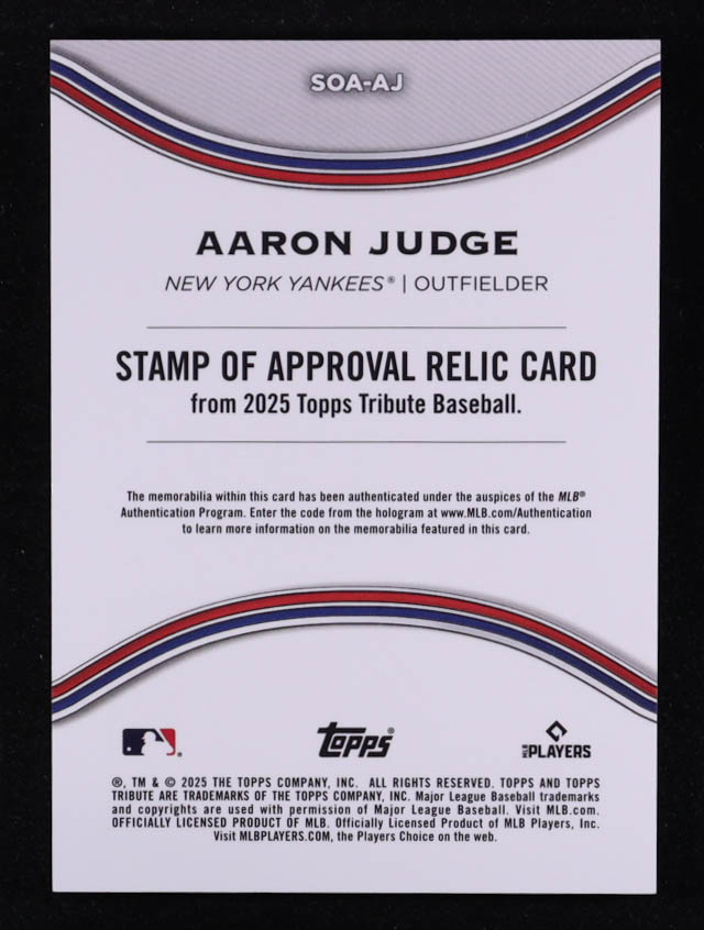 Aaron Judge 2025 Topps Tribute Stamp of Approval Relics #SOAAJ #157/199