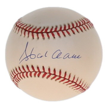 Rawlings Official National League baseball. Hand-signed by Hank Aaron (D. 2021, Atlanta Braves, HOF).