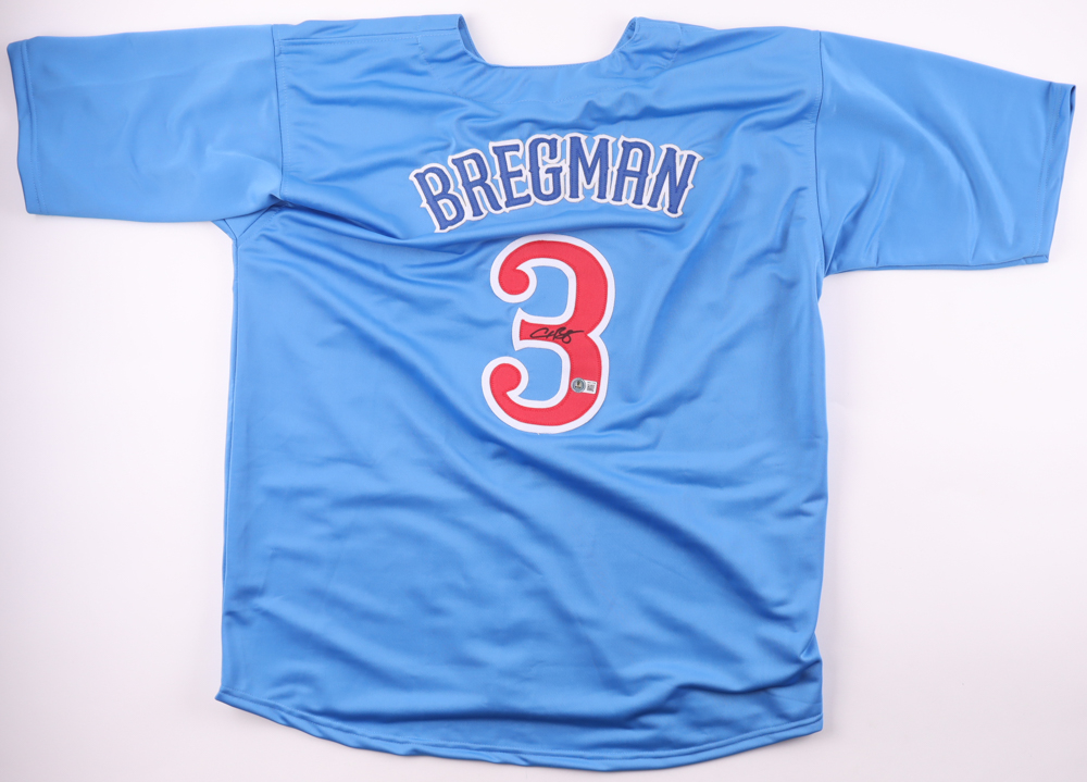 Custom jersey with everything sewn on, size XL. Hand-signed by Alex Bregman.
