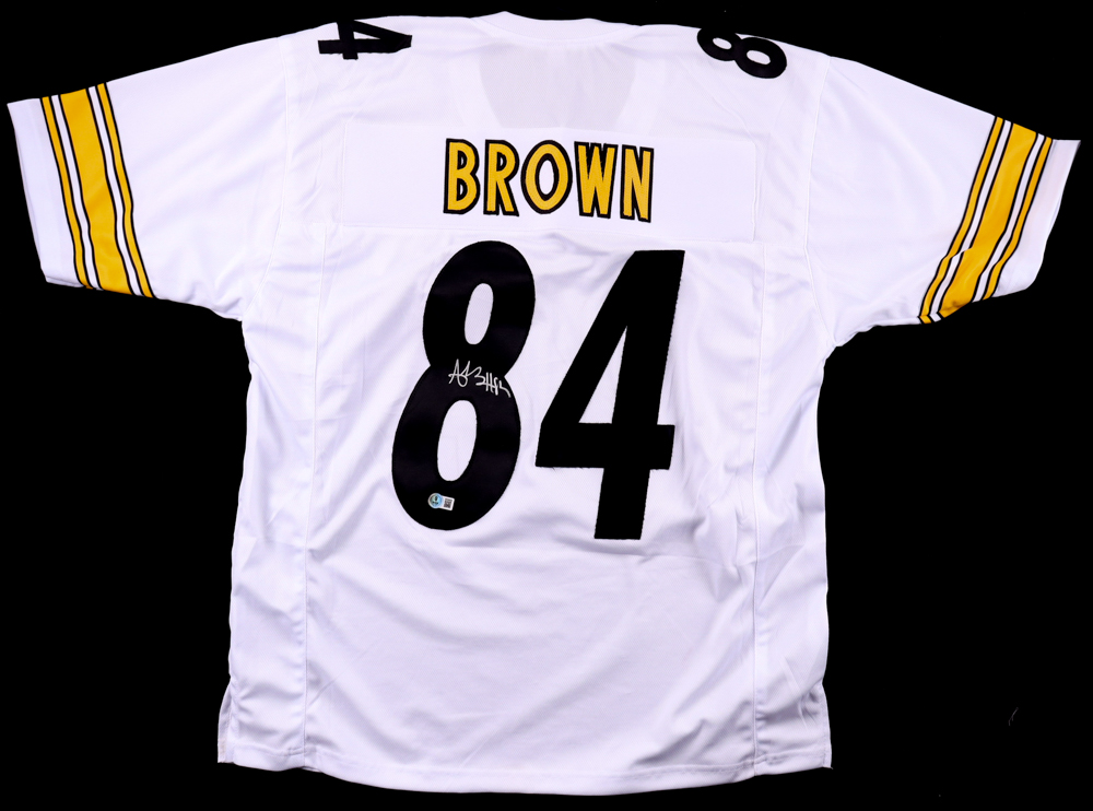 Custom jersey with everything sewn on, size XL. Hand-signed by Antonio Brown.