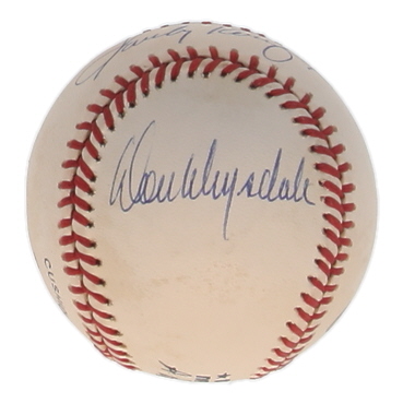 Rawlings Official National League Baseball. Hand-signed by Sandy Koufax (Los Angeles Dodgers, HOF) and Don Drysdale (D. 1993, Los Angeles Dodgers, HOF).