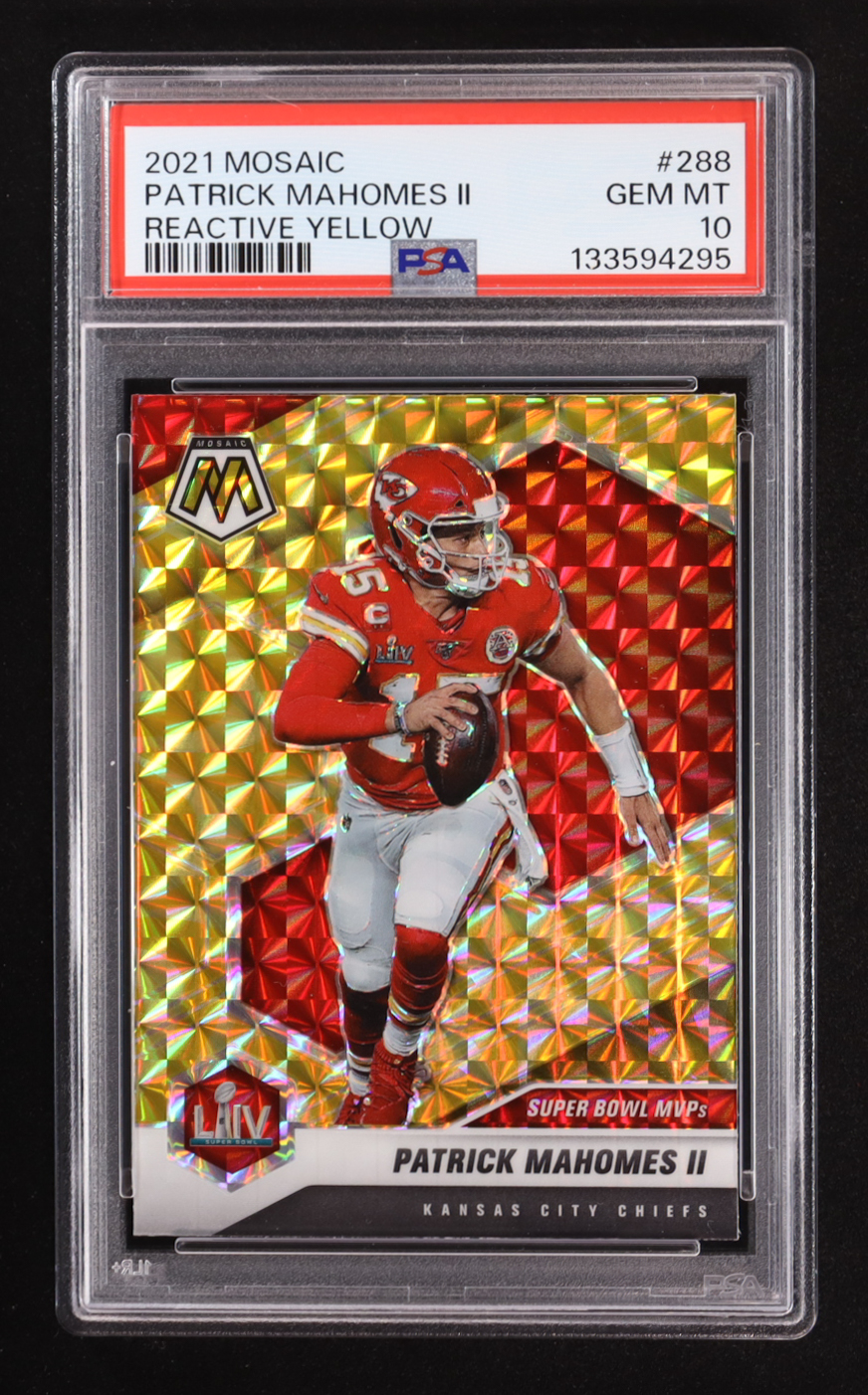 Patrick Mahomes II 2021 Panini Mosaic Mosaic Reactive Yellow #288 MVP (PSA 10)