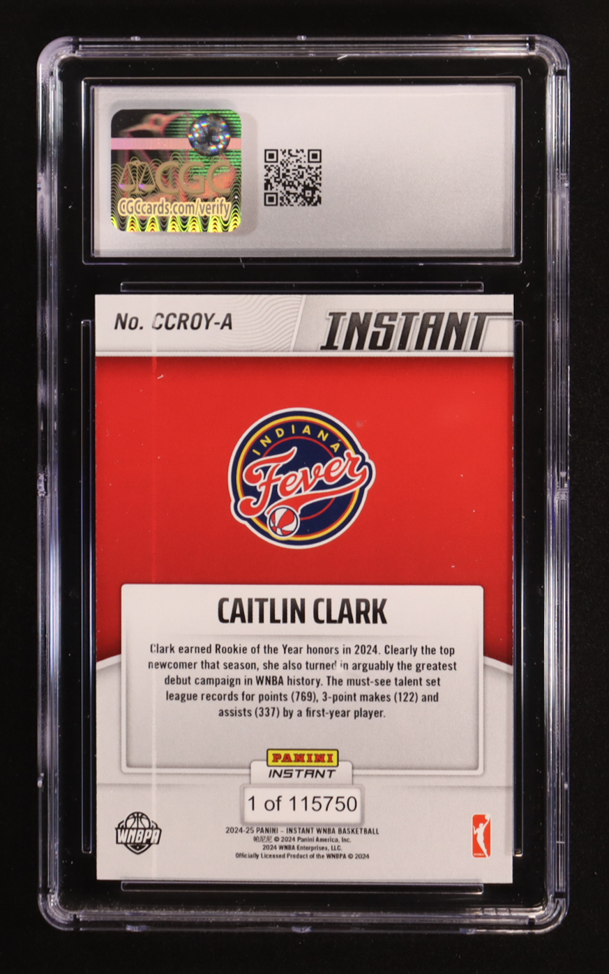 Caitlin Clark 2024-25 Panini Instant WNBA Rookie of the Year #CCROY-A RC #1/115750 (CGC 8)