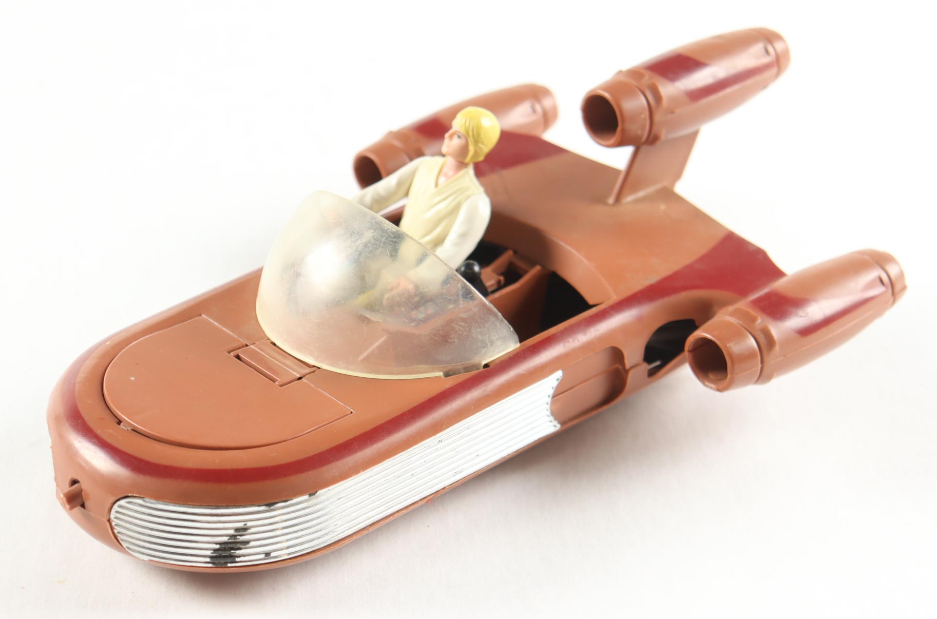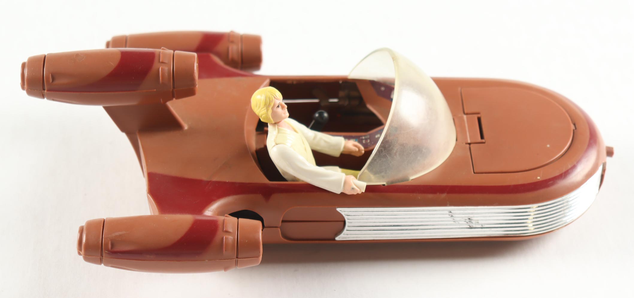 1977 Vintage Star Wars "Luke Skywalker & His Landspeeder" Figurine Set with Wood Display Case