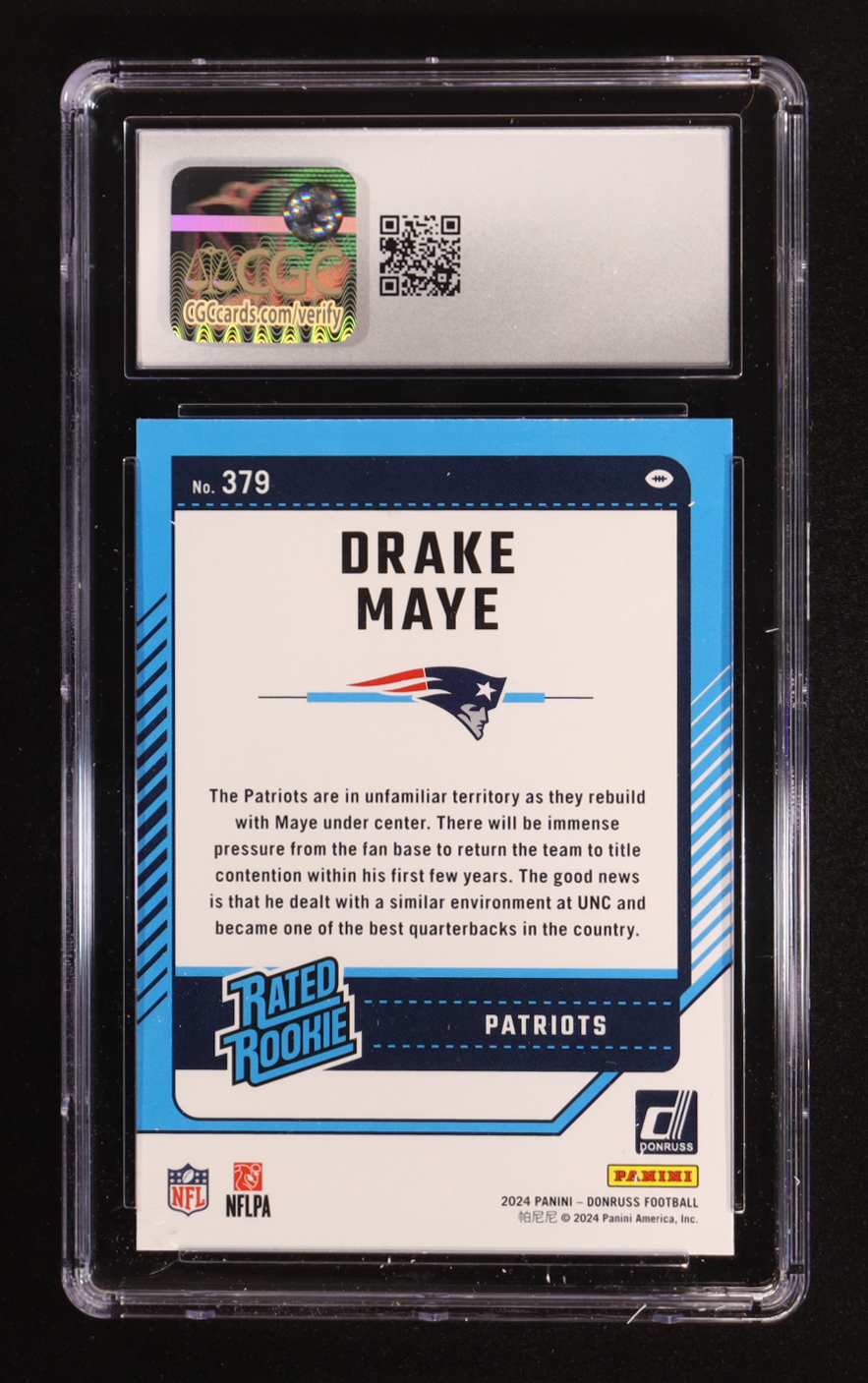 Drake Maye 2024 Panini Donruss RR #379 RC (CGC 10)