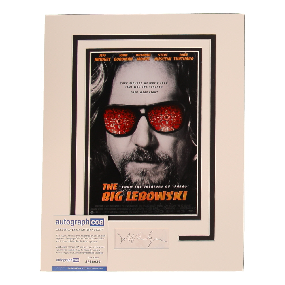 Custom matting measures approximately 11" x 14" in size. Cut is hand-signed by Jeff Bridges (The Dude).