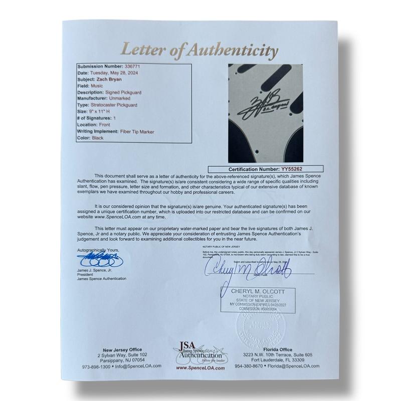 Custom Autograph Edition Stratocaster style electric guitar measures approximately 39" in length and has been hand-signed on the pickguard by Zach Bryan.