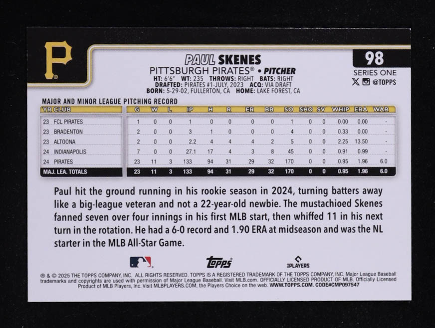 Paul Skenes 2025 Topps #98