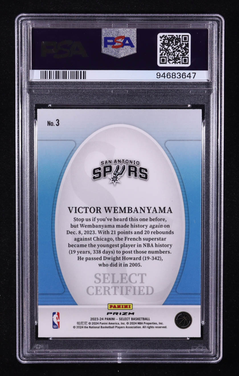 Victor Wembanyama 2023-24 Select Select Certified Green Prizms #3 RC (PSA 10)