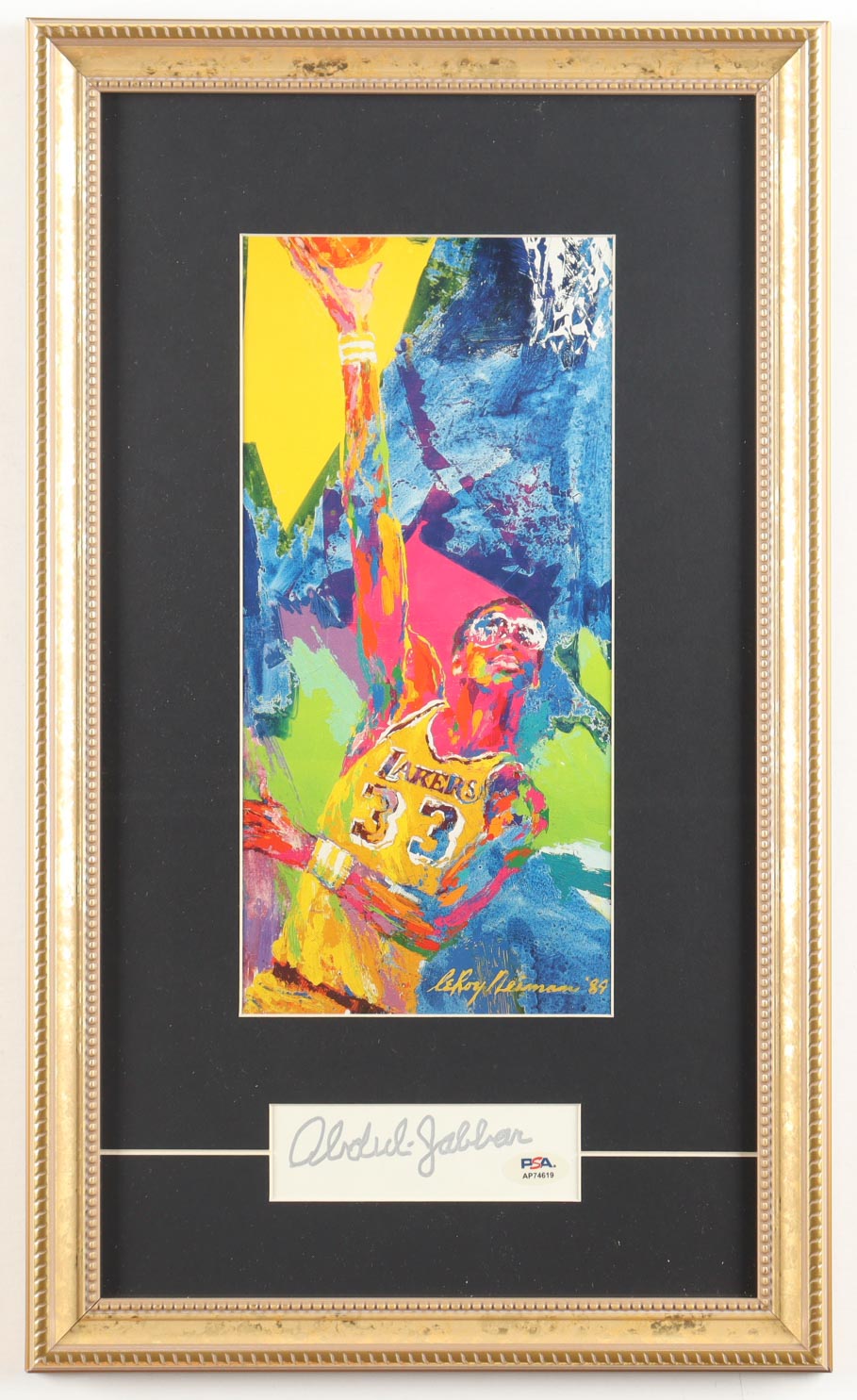Kareem Abdul-Jabbar Signed Lakers Custom Framed Cut Display with Leroy Neiman Art Print (PSA)