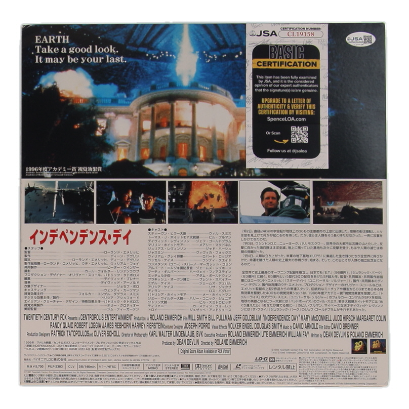 "Independence Day" Japanese LaserDisc has been hand-signed on the slipcover by Will Smith. Please note, LaserDisc is included as shown.